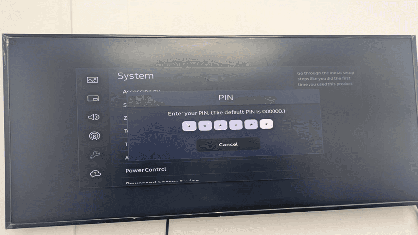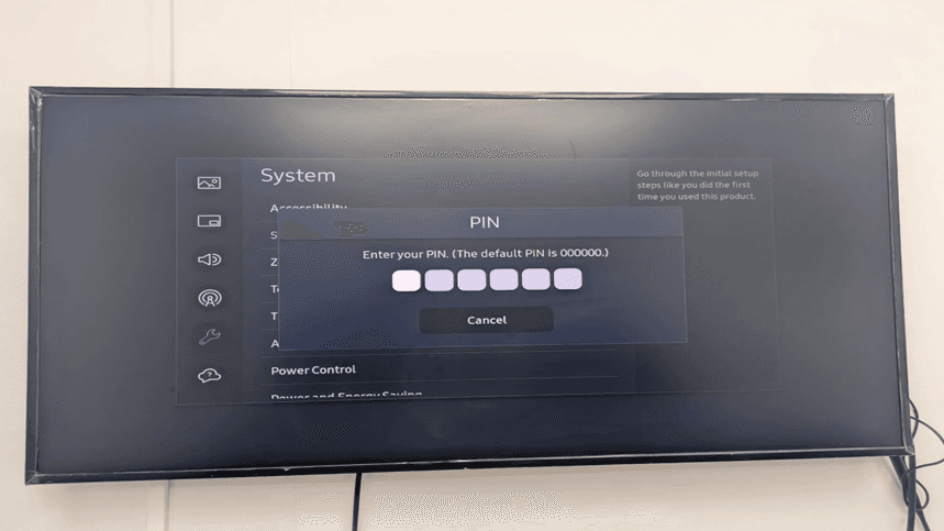 Step 1: Open Samsung Tizen TV - Verify Devices power screen.