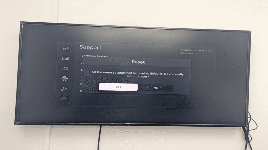 Action needed: Press the arrow keys on your remote control down to the Support menu option. Important system configuration options will be found here.