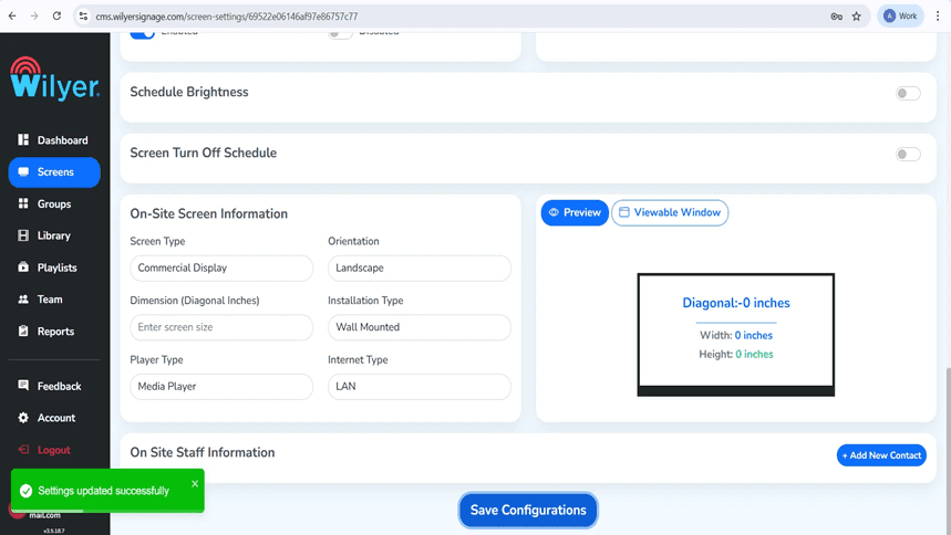 Look at the preview of a window that you are viewing that indicates your size. Click on the save configurations to complete your digital signage player settings in windows PC.