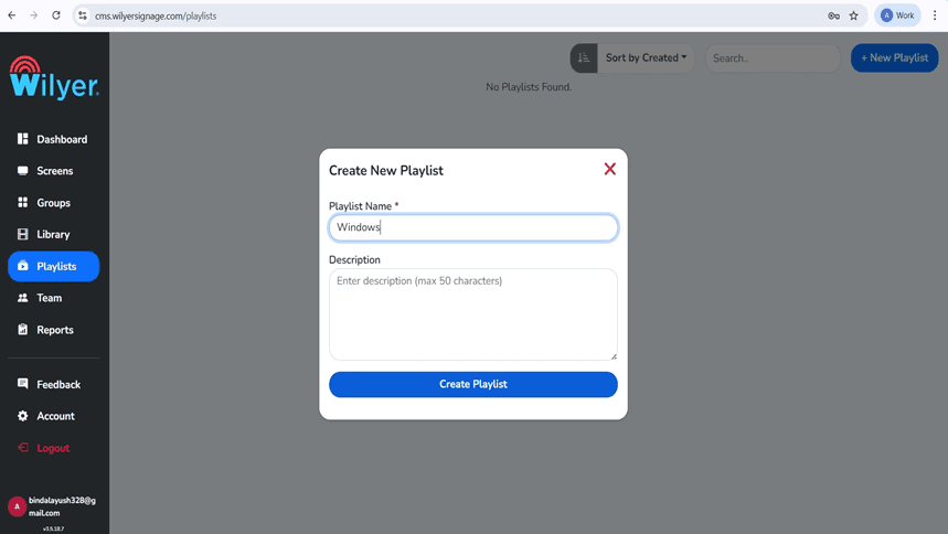 Enter playlist name description (a name such as Windows). The media content, widgets, and sequences you desire to have on your Samsung Tizen commercial display signage will be included in this playlist. The naming conventions are clear and therefore manage various playlists in your Samsung Tizen deployment of signage solution.
