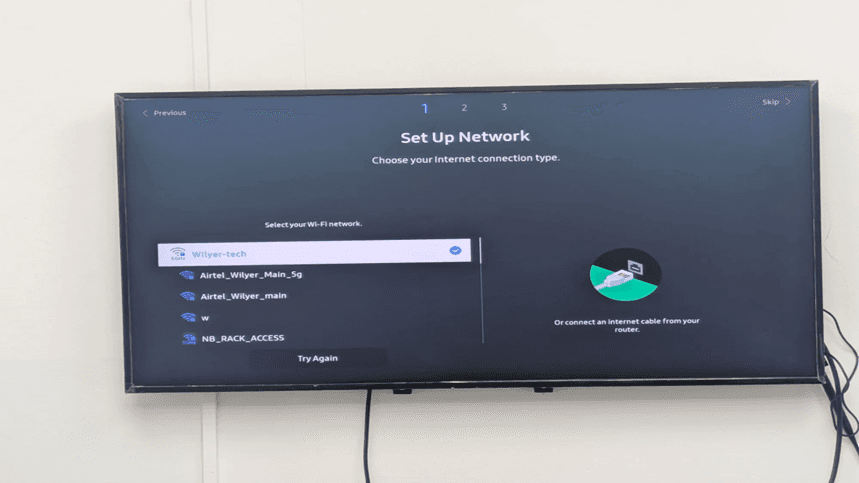 Wired connection is preferred: Wi-Fi is also an option, but Ethernet connection will be a better option to use Samsung Tizen signage.