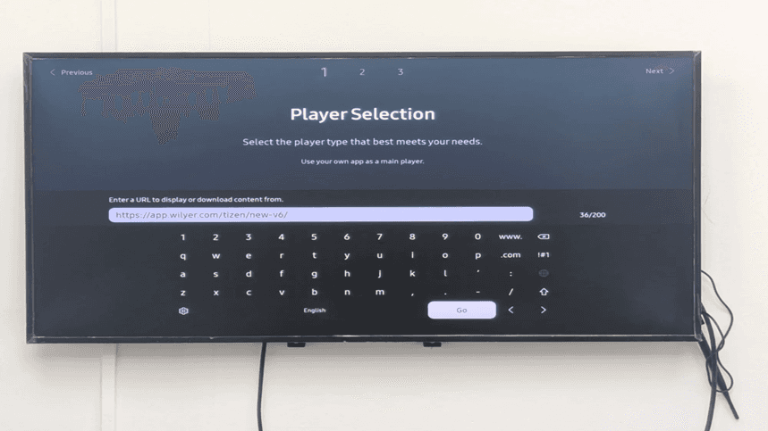 Using the browser link method, the Wilyer Digital Signage software can be installed directly on a Samsung Tizen TV with an active internet connection. By opening the TV’s and entering the Wilyer installation link, the application downloads and installs directly on the screen without the need for a USB device. Once installed, the display shows a pairing code that can be used to connect the screen to the Wilyer dashboard. This method is ideal for quick and hassle-free setups.