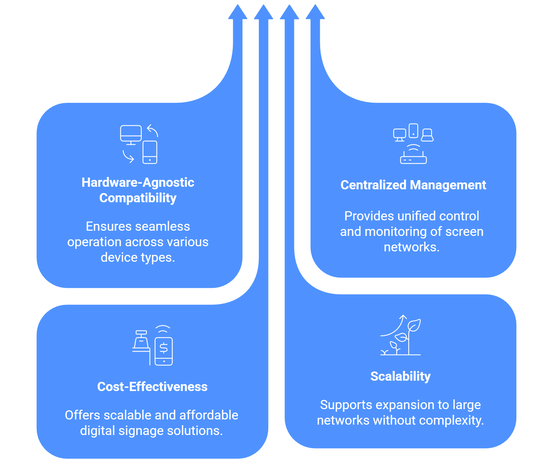 Using devices like the FireStick, which runs on an Android-based OS, can be a viable, scalable, and cost-effective option for large digital signage networks, and it is not necessarily discouraged.