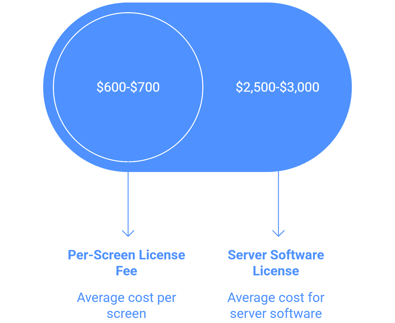 Certainly, on-premise digital signage software typically comes with a one-time charge, rather than an ongoing monthly or annual fee. This model is an option for companies that want to own everything in terms of both software and infrastructure.