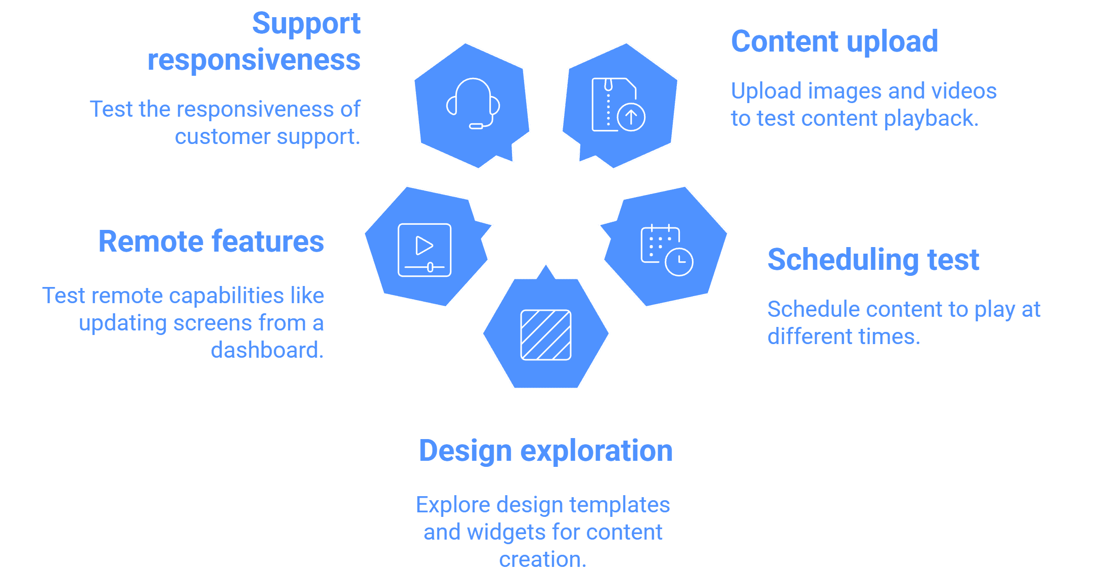También es una buena oportunidad para validar el software de señalización digital en su hardware, ya sean televisores inteligentes existentes o reproductores de medios.