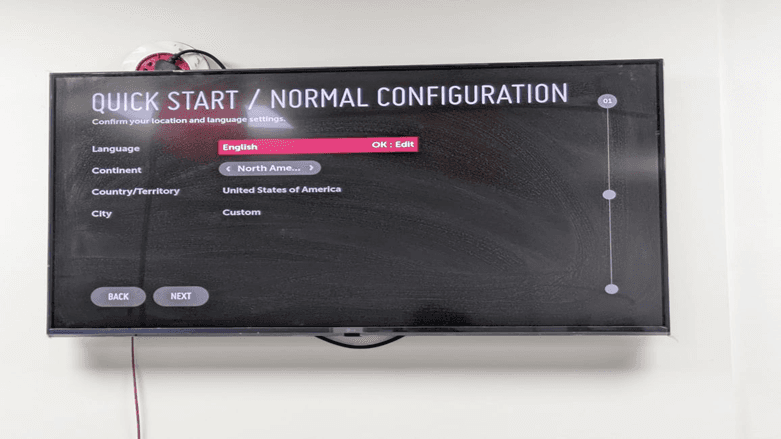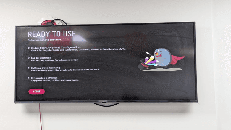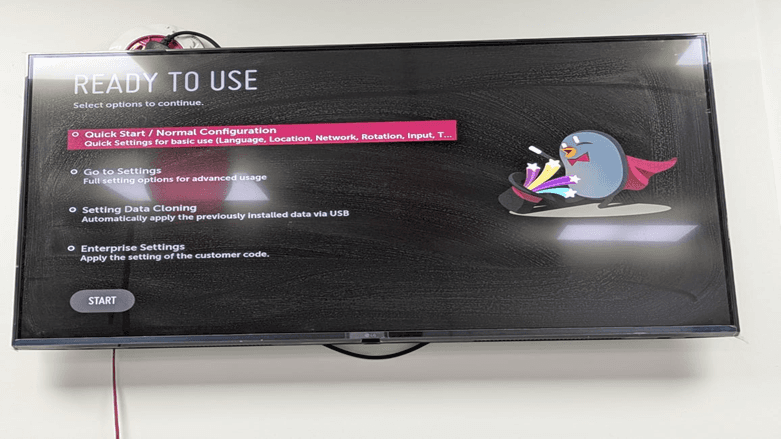 Select the option of Quick Start / Normal Configuration and then press the start button on the bottom of the screen to continue with the setup of your LG WebOS content management system and click on the “START” Button.