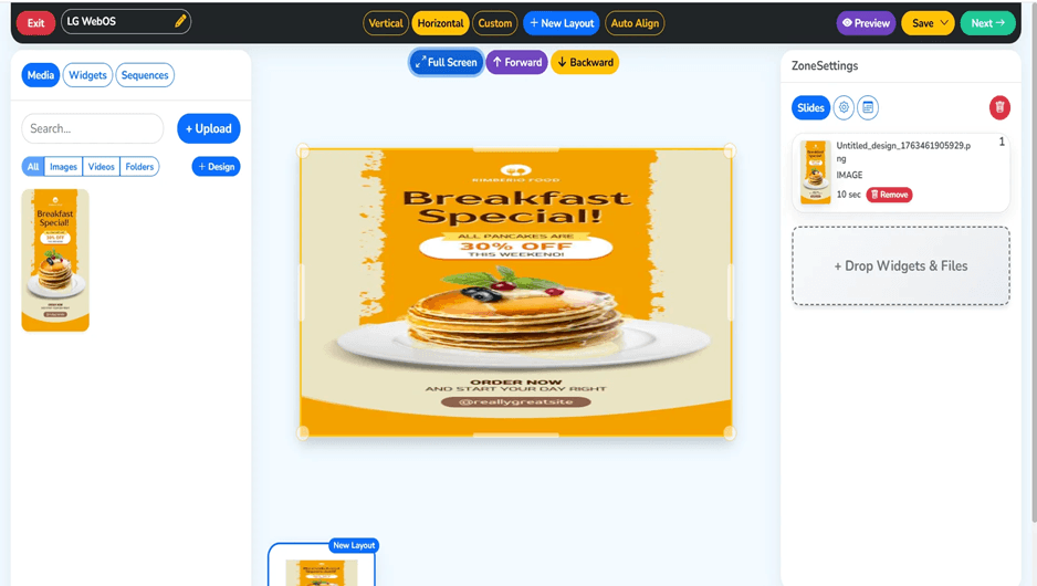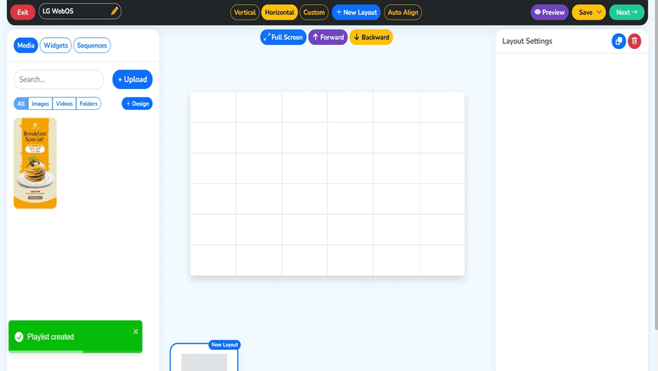 The playlist is now live and playing on the connected LG webOS display. Content is displayed according to the selected layout, playback sequence, and timing settings. Review the visuals, alignment, and transitions to ensure a smooth, consistent, and professional viewing experience.