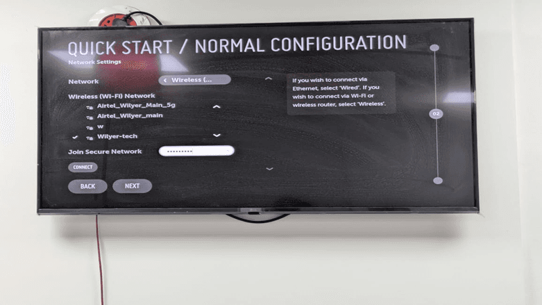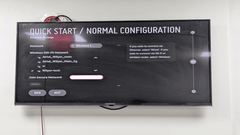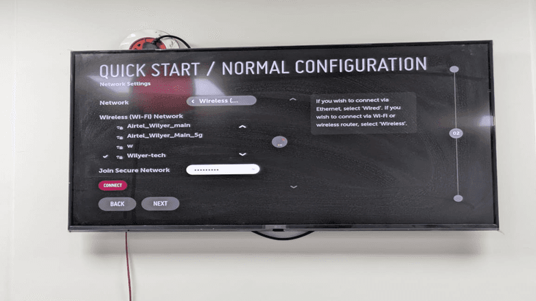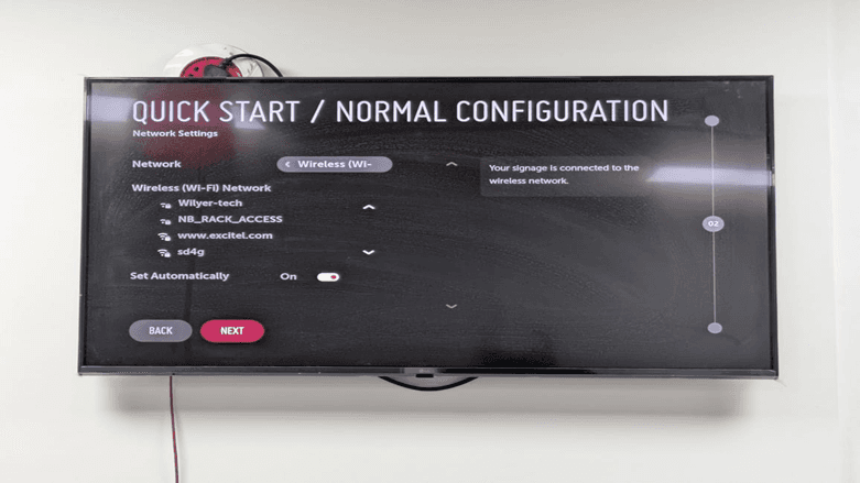 Under the network type option, there will be available wireless networks. This is a requirement towards WebOS digital signage player connectivity.