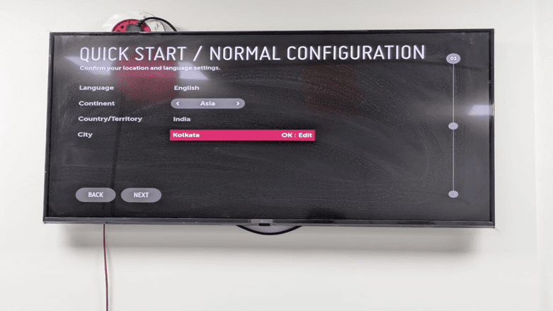There will be a dropdown menu of available countries. In this case, we will pick India as the LG WebOS professional signage solution. Your remote has the arrow keys which you can use to navigate and choose the country.