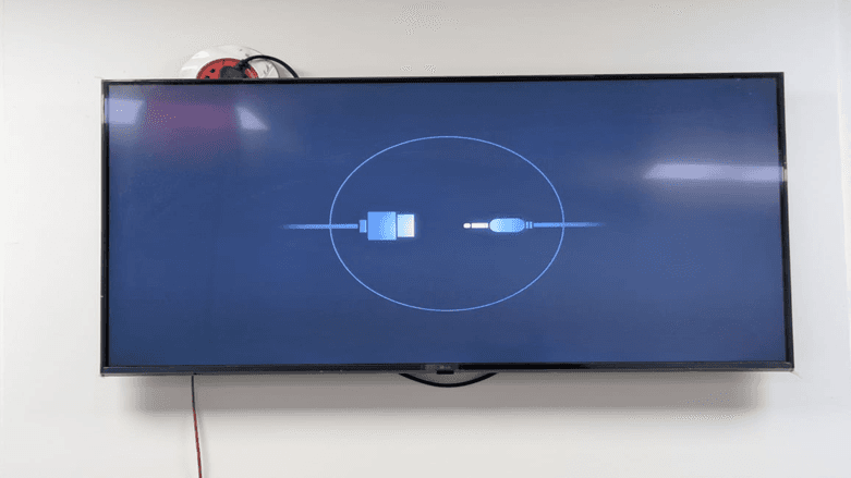 Once clicked on DONE the system will show a synchronization screen. This is what makes your display ready to accept the digital signage contents management interface. The sync animation depicts an USB cable and device connection and this means the system is about to deliver content.