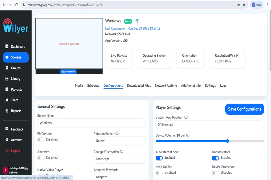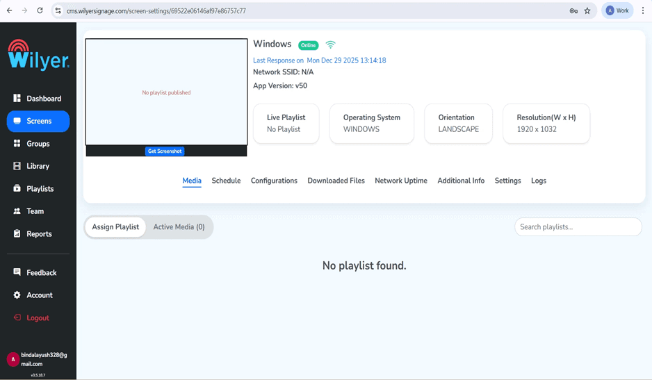 Get your browser and sign in to your Wilyer Signage account as cms.wilyersignage.com. This is your online signage content management Dashboard to control all your windows PC players.