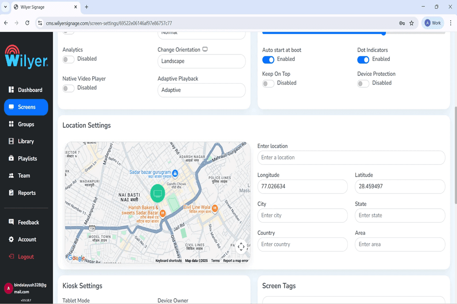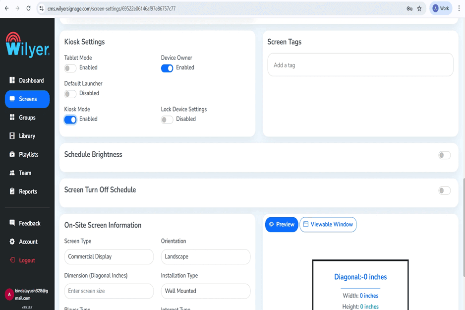 Kiosk Mode is used to remove the system navigation bar and restrict access to device controls. When Kiosk Mode is enabled, the Wilyer Digital Signage Player runs in full-screen mode, hiding navigation buttons such as Home, Back, and Recent Apps. This prevents users from exiting the signage app or accessing other system functions.