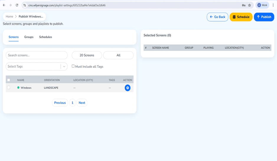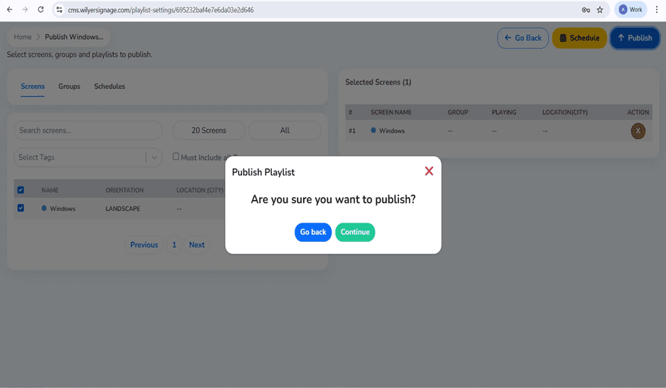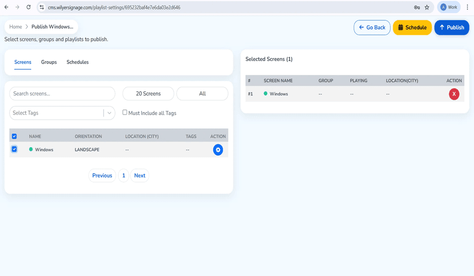 Check the box alongside the windows screen you had arranged earlier. When you have a bigger windows digital signage network you can post to many screens at the same time.