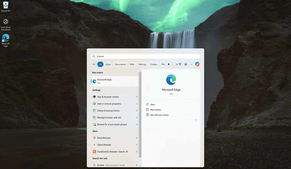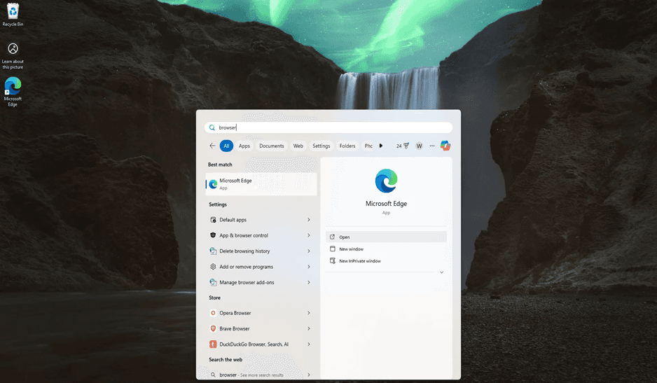 Go to the windows search and enter the browser in the search box to find your web browser. This will be applied to get the digital signage player app on Windows.